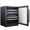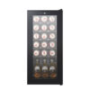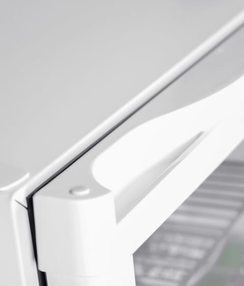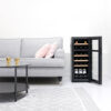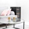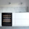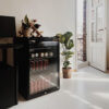 This wine cooler has a contemporary, Scandinavian design, matte black finish and four wooden slide-out shelves. The cooler can be built in easily below the counter and its height can be adjusted to ensure a perfect fit!