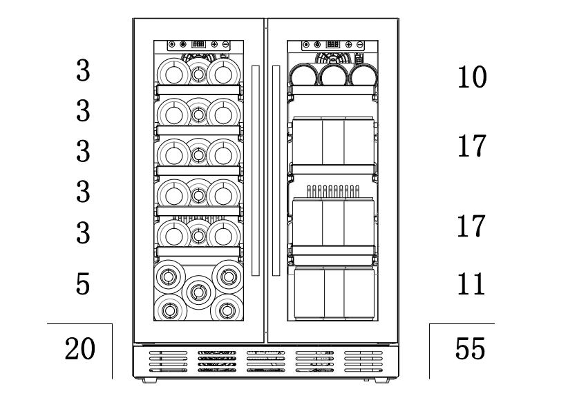 • Two adjustable temperature zones (5-20 degrees)